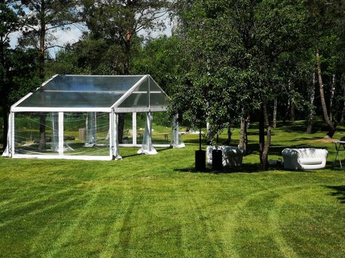 • Ūdens necaurlaidīgs PVC jumts un 6 sānu sienas 5m (visas sienas ir atveramas pa vidu ar rāvējslēdzēju),